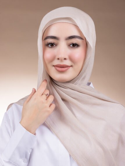 تميّزي بأناقة خفيفة مع حجاب مودال مكسر، المصنوع من خامة مودال ناعمة بتكسير خفيف جدًا تضيف لمسة عصرية ناعمة لإطلالتك.